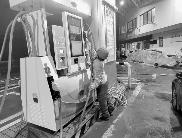 员工检查加油机。