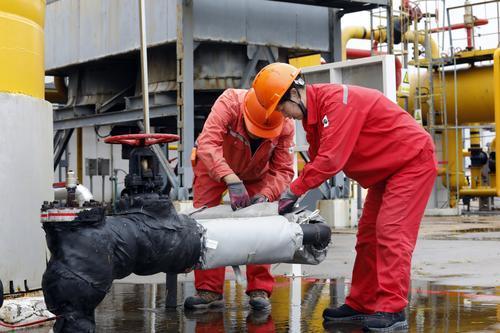 为保障冬季生产平稳运行,胜利油田桩西采油厂油气集输管理中心扎实推进冬防保温工作,对输油设备和流程管线加装保温套,截至目前已加装237处,保障了油气资源平稳外输。图为10月11日该中心员工为天然气外输管道加装保温套。林 明 摄 施文婷 文