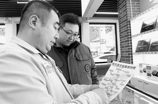 在硬件保障到位的同时,暖心服务同步升级。各加油站为自驾游客准备“哈尔滨手绘旅游地图”,加油员不仅主动介绍当地旅游特色,还会根据游客目的地,在地图上圈注最优加油站点。
