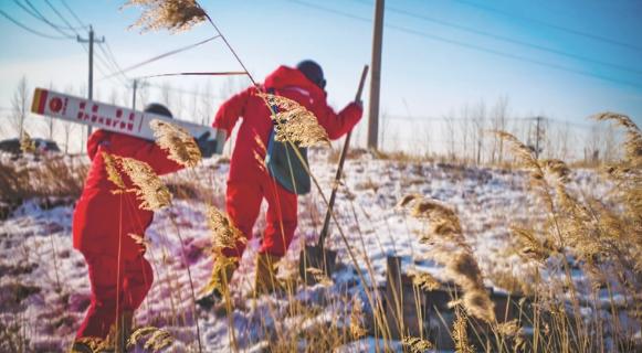 2月8日,立春已过,大庆市的最低气温仍为零下20摄氏度。在距离大庆市40公里的大庆油田天然气分公司安达输气站,记者跟随巡护工皇甫根泽和李振华踏上了新一天的巡检路。今天他们的任务之一是更换标志桩。