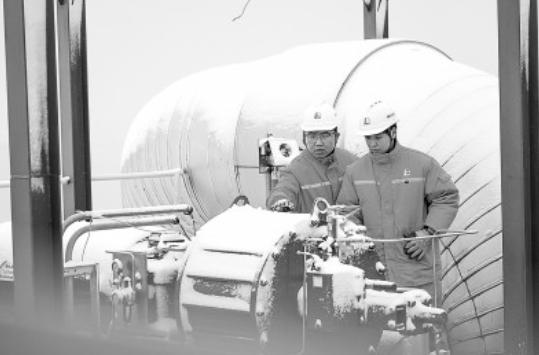 天津LNG接收站员工冒雪进行设备巡检(图)