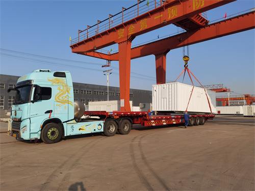 天成飞达公司正在进行野营房装车,准备发往天津港。