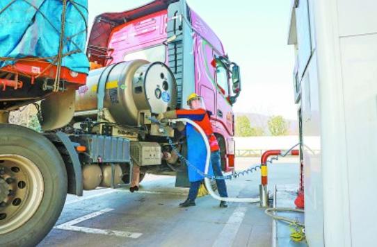 今年以来,安徽石油将LNG经营作为新的效益增长点,通过实施精准营销、优化资源配置、提升服务保障水平等措施,全力拓市攻坚创效,前两个月LNG经营量同比增长44%。图为3月5日合肥石油金山路综合加能站员工为客户加注LNG。