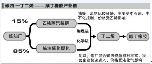 根据目前掌握的数据测算,预计2015年国内丁二烯的表观需求量在350万吨左右,而根据国内石脑油为原料的乙烯产量测算,丁二烯产量在300万吨左右,未来丁二烯供应仍存在较大的缺口。