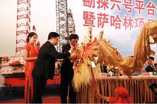 美丽、壮阔的俄罗斯萨哈林海域,将又一次迎来中国石化的开拓者。5月23日,在上海海洋石油局举行隆重的中俄合作萨哈林项目出征仪式上,有关领导为象征出征工程队伍的东海蛟龙点"睛"。这是上海局自2005年以来第四次出征萨哈林,组建了强大的"联合舰队",派遣中国石化最先进的自升式钻井平台勘探六号,拥有多次出征海外经验的大马力多用途工作船东方勇士2号、东方勇士3号,以及井筒技术服务队伍,共赴萨哈林海域,进行"北维宁3井"作业。