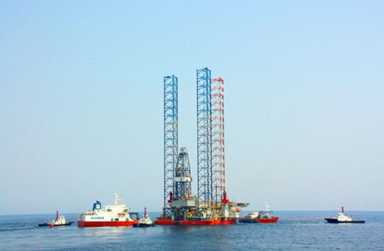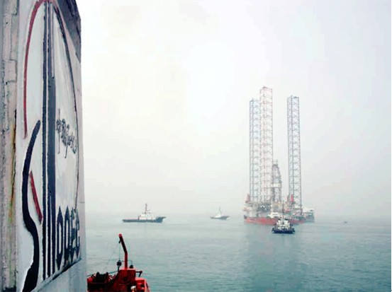 接着平台和拖轮人员连续奋战2天,完成了最后的焊接固定工作,一切准备就绪。6月11日18时40分,干拖船的一声长鸣,开始了驶向萨哈林的航程。6月17日8时,勘探六号到达萨哈林Korsakov港,在完成相关的清关工作后,将再次启程,湿拖通过拖轮拖拽约477海里最终到达工区"北维宁3井"井位,开始海外作业的处子秀。