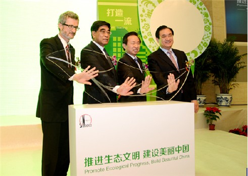 国家环境保护部副部长李干杰,联合国全球契约组织总干事乔治·科尔到会并致辞。阿尔及利亚驻华大使拉贝西、丹麦驻华大使裴德胜和沙特、阿根廷、加蓬、哈萨克斯坦、尼日利亚等国驻华使馆官员,国家发改委、科技部、工信部、环保部、交通部、国务院国资委、国家安监总局和国务院派驻石化集团监事会等部门有关负责同志,国内外新闻媒体代表,社会监督员及环保专家,中国可持续发展工商理事会部分成员,全球契约组织中国网络成员,部分环保NGO组织,国内外合作伙伴等共300余人参加了发布会。中国石化集团公司董事长傅成玉同志作了题为《实施绿色低碳战略,做全球契约领跑者》的主旨发言。中国石化所属企事业单位约2000人通过视频系统收看了发布仪式。