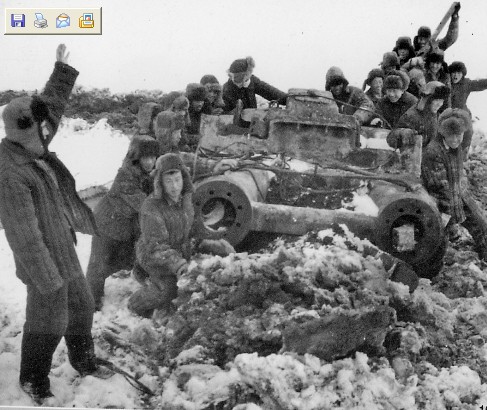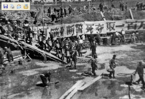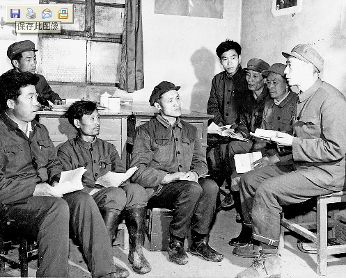 发扬解放军的优良传统,艰苦创业,人拉肩扛搬运设备。
