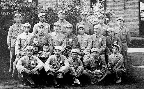 57师改编为石油师前夕,师党委召开扩大会议后合影。前排左起:崔元贵、马骥祥、赵侠龄、陈烈民、李杰;二排左起:许培德、秦峰、陈宾、程建家、张涛、张文彬、许士杰;三排左起:王瑞龙、孙燕文、黄国斌、宋振明、秦文彩、李敬。