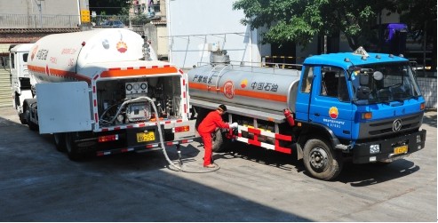 目前,南充还未建立LNG充装站,为满足改装车使用LNG燃料,南充石油输运部配备了一台LNG移动加注车,其7.6吨的大容量能随时满足改装车所需。