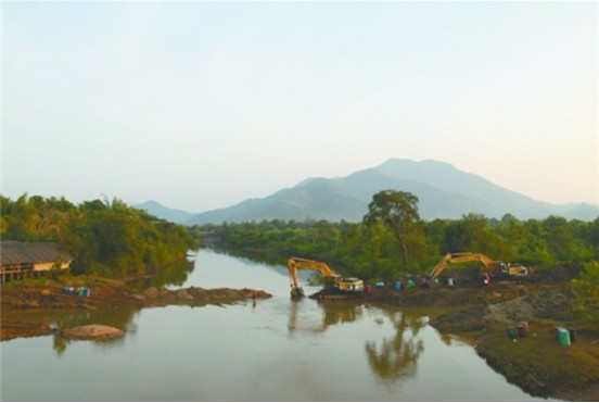 HEINZE河与安达曼海相连,水位受潮汐影响较大,水文情况复杂,是缅泰工程最大的控制性工程。为确保万无一失,管道四公司缅泰项目部与业主精心研究穿越河流方案,在当地时间17时水位到达最高位时,利用5根12米长、50吨重的复壁管,在60个浮筒的漂浮作用下,用时10分钟将管道由西岸牵引至东岸,并准确在指定地点沉降,攻克了这个缅泰工程最大控制性难点,得到业主和监理的一致好评。