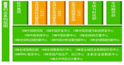 如今,IBM的服务涵盖业务咨询、IT服务、业务流程服务等多个领域。2011年,IBM服务收入占总收入的56%,成为推动IBM公司始终保持良好经营业绩的重要引擎。IBM外包业务收入占总收入的30%。目前,IBM拥有覆盖业务咨询服务、IT服务及业务流程服务的全面服务能力,并通过IBM全球企业咨询服务部、全球信息科技服务部及全球业务流程服务部三大服务部门,为各类客户提供强大的服务支持。