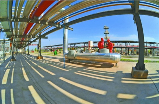 新疆油田优质高效地开发了玛河气田,建成了环准噶尔盆地输气管网。图为员工巡检设备