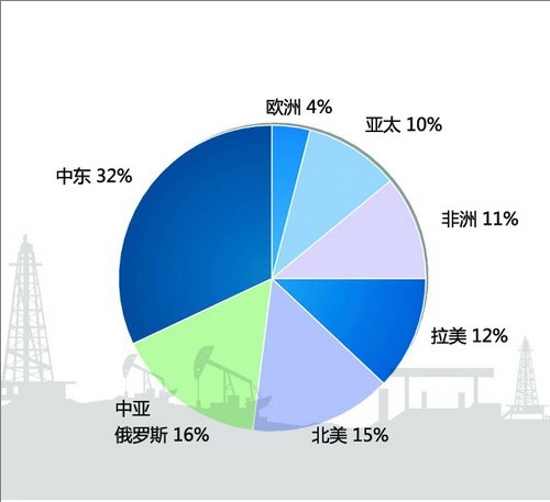 2012年全球石油产量地区分布图