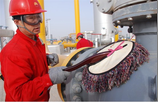 图为西气东输集气站员工在站内清扫设备。姚龙摄