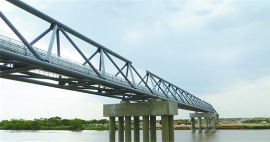 图为南约洛坦外输管道跨越卡拉库姆河场景。
