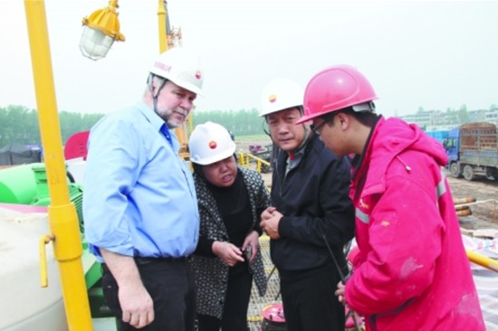 欧洲钻井承包商协会技术总监、英国LMR公司总经理克鲁斯到长江穿越现场交流。