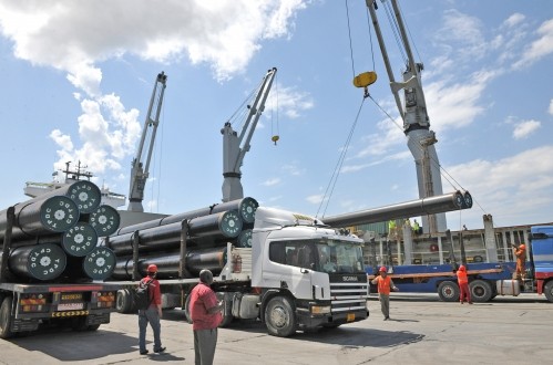 坦桑项目首船钢管运抵达累斯萨拉姆港(图)