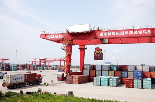 作为湖南唯一的出海口、长江沿岸8大天然良港之一,城陵矶口岸先后被国家批准为国家一类水运口岸、对外籍船舶开放港口、15个内河对台水运直航口岸之一。2009年6月,城陵矶新港开港营运,设计年集装箱吞吐能力达30万标箱;2010年7月,长江干线武汉至城陵矶河段海轮航道开通,万吨海轮可直达城陵矶;2011年,城陵矶获批开通至宁波、南通、太仓、上海4条“五定”(定点、定线、定班次、定时、定价)始发班轮外贸运输航线;2012年3月,城陵矶开通国内首条内河港口直达港澳航线,实现港澳常态直航。2012年,城陵矶新港集装箱吞吐量从2009年的4万标箱,提升到20万标箱。今年上半年,城陵矶口岸集装箱吞吐量实现“双过半”,口岸进出口货物总量709万吨,同比增长0.14%;集装箱吞吐量100038标箱,同比增加3856标箱,增幅3.8%。