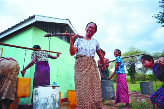 曼德勒省普亚基功村打井项目让当地群众绽开笑颜。