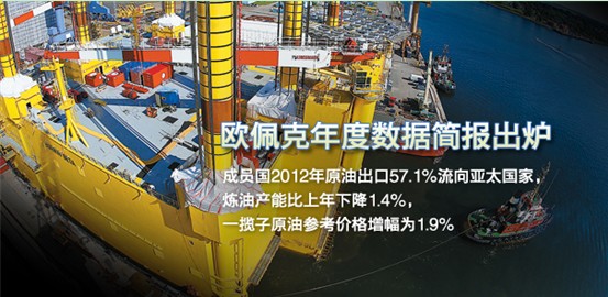 成员国2012年原油出口57.1%流向亚太国家,炼油产能比上年下降1.4%,一揽子原油参考价格增幅为1.9%