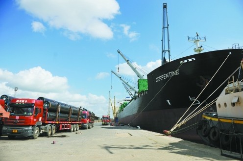 中油技开148公里钢管卸毕姆特瓦拉港(图)