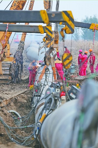 在港清三线,管道施工在加紧进行,确保如期投产。