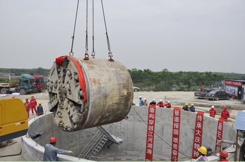 图为M1051盾构机被吊装出井。宋洋摄