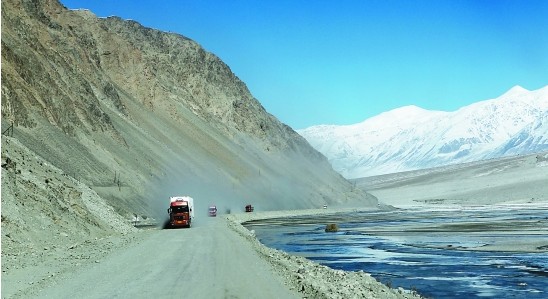 图为油罐车行驶在帕米尔高原环山路上。金添彭波摄