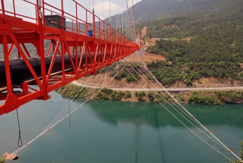 白龙江悬索跨越。