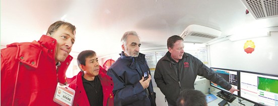 国外专家到东方物探地震队参观G3i等先进技术应用情况。