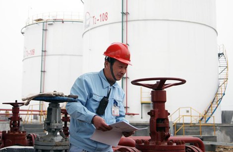 [中国石化新闻网2014-03-11]3月3日下午,巴陵石化供销部道仁矶储运车间苯系统储运设施完善改造项目现场,车间员工在查看流程。
