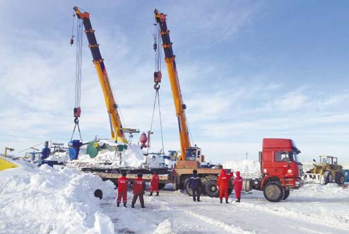 2月中旬以来连续十几天肆虐的暴风雪,使哈萨克斯坦国阿克纠宾油田区域气温最低降到零下40多摄氏度。面对积雪厚达五六十厘米、道路被封、设备物资被埋的重重困难,中国石油运输公司哈萨克斯坦分公司快速启动应急预案。2月17日至3月初,这个分公司承担长城钻井公司油井搬迁任务,连续10多天,搬迁运输车队用推土机协助拖拽被大雪掩埋的井队物资,吊装钻井设备,保质保量完成搬迁任务。