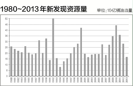 在2013年的新增储量中,有120亿桶是由国际石油公司发现的,与其2009年前的新增储量规模相当,接近前十年的平均值。