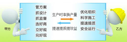 台搭好了,演得好坏就要看乙方唱功了。“乙方就是将全部心思用来优化组织、科学施工、提速提质,最终实现提效上。”明确分工才能充分调动双方的积极性、主动性、创造性。