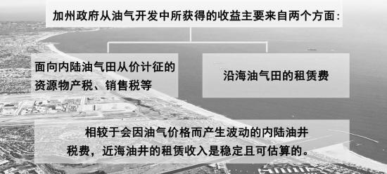 油气行业是加州经济体系的重要组成部分,加州政府从油气开发中所获得的收益,在加州财政收入中占有较大比重。根据加州油气法,收益主要来自两个方面。一是面向内陆油气田从价计征的资源物产税、销售税等。因为采用从价计征方式,加州政府的收入和油田公司的经营效益、油气产品价格紧密相关。这也促使加州政府对油气田公司监管采取了“合作+监督”的管理模式,并通过调整油气价格、权益率等经济措施积极鼓励油气公司采用新技术、新方法,提高油气产量。二是沿海油气田的租赁费。加州油气法规定,近海油井的产权属于加州政府,由矿藏资源管理局代表政府将油气田开发权出租给油气公司,油气公司需向政府缴纳资源费、矿藏权益费等税费。相较于会因油气价格而产生波动的内陆油井税费,近海油井的租赁收入是稳定且可估算的。加州矿藏资源管理局在十多年前估算过管理局成立后征收到的费用:根据合同规定的油气资源红利为1.9亿美元,在沿海和北加州天然气等矿藏权益费收入为1.4兆美元,在长堤地区矿藏权益和资源费收入为4.5兆美元。
