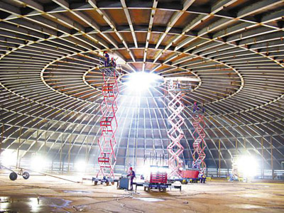 寰球公司江苏LNG项目罐内施工。