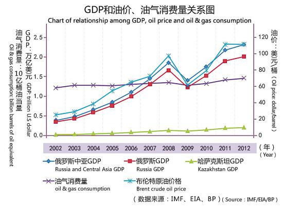TheGDPtrendinRussiaandCentralAsiaiscloselycorrelatedtointernationaloilpriceastheregion'seconomiesdependlargelyonoilandgasresources.