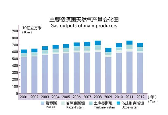 中亚—里海地区的资源潜力备受世人瞩目。主要资源国在保障扩大生产、满足国内油气需求的同时,努力融入世界油气市场,为国内社会经济发展注入活力,并赢得一定的国际地位。由于多为内陆国,油气资源出口的开拓成为这些国家能源战略的关键。伴随油气产量的提高,这些国家努力向欧洲特别是中国方向拓展油气战略通道。