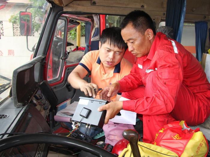 6月17日,南阳市交通运输管理局的专业人员在对该大队的危险品运输车辆的GPS卫星定位监控系统进行升级更换。
