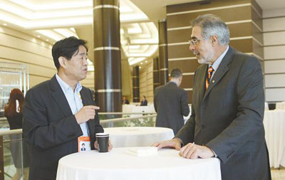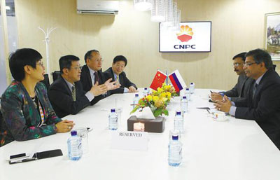 大会为进行各种商务合作和技术交流搭建了广阔平台。图为中国石油代表与印度国营天然气公用事业公司高管进行交流洽谈。