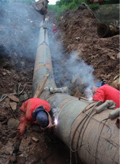铜相线813管线迟迟未能投入运行,是1年来制约相国寺储气库注气能力提升的最主要因素,而管线穿越嘉陵江,则是整条管线贯通最关键的部位。6月27日8时15分清管作业完成,埋在江底的管线也终于和两岸的管线连通。