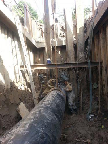 CPP219机组在泰国那空沙旺管道工程中巧妙利用“九接一”施工方法,在不影响周边加油站等商户运营的情况下,成功攻克一座加油站附近连头施工难点。