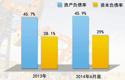 根据披露数据,股份公司上半年实现了“一稳”,即负债率保持稳定,现金流明显改善。2014年6月30日,资产负债率、资本负债率分别为45.9%和29.0%,与期初相比基本持平;经营现金流持续增加,上半年经营现金流1335亿元,同比增长30.8%,自由现金流净额38亿元,同比增加358亿元,财务状况稳健向好。