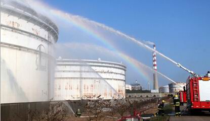 图为检查中,临时决定以白沙湾站4号储油罐二级密封舱着火为假想开展应急演练。
