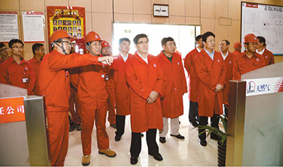 9月7日,王玉普、李春光和山东省委常委、青岛市委书记李群一行到天然气分公司青岛LNG接收站现场调研。记者程阳摄