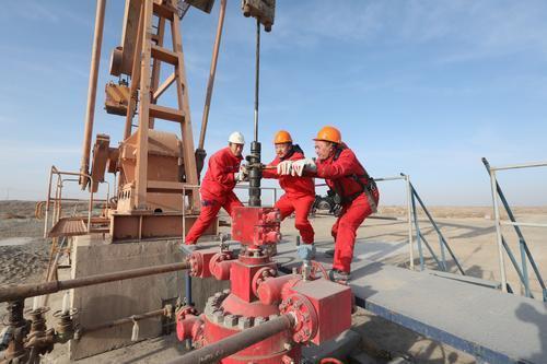 新春伊始,西北油田持续强化安全生产,精细巡检设备、精准录取关键参数,全面排查隐患,全力保障油井安全平稳运行。图为2月17日采油管理一区员工在TH10205井紧固井口。胡 强 摄