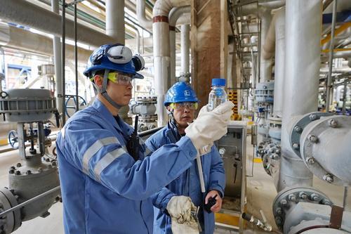 上海石化强化产销衔接,重点抓好装置检修后的运行维护,各运行部安排骨干人员紧盯现场,确保生产运行整体平稳。图为近日炼油部员工采样汽油产品,严把产品质量关。李英豪摄李娟文