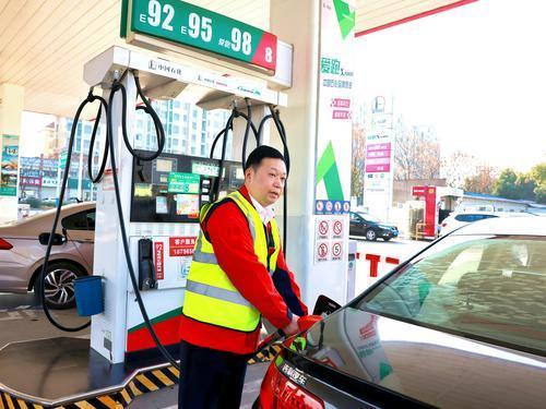 安徽石油组建179支帮扶服务队,深入销量增幅较大、车流增加较多的加能站,开展车辆引导、油品加注、环境清理、便利店服务等工作,提升现场服务效率,保障加能站高效运营。图为2月22日帮扶服务队成员在合肥石油巢湖西坝口加能站为客户加油。孙德荣 摄