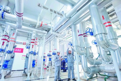 图为新星公司员工在雄安新区地热供暖站巡检设备。曹海峰摄